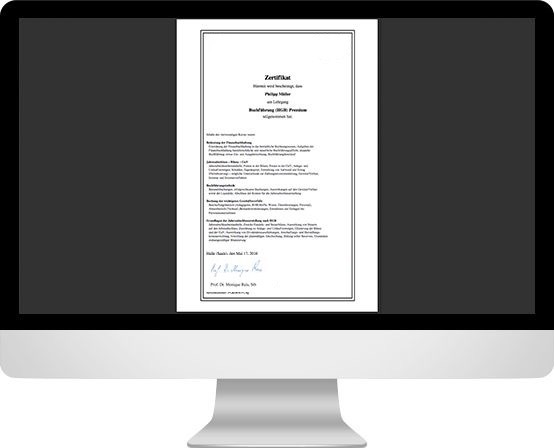 Sie erhalten ein aussagekräftiges Teilnahmezertifikat für den nächsten Schritt auf Ihrer Karriereleiter.